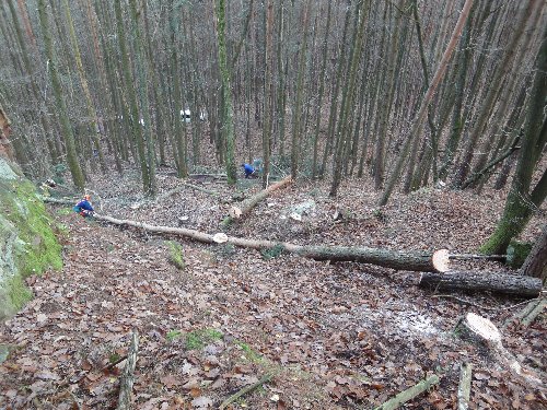 Hinweis: Das gefällte Holz wird noch von den Waldbesitzern abtransportiert. Je nach dem wie lange dies dauert kann es zu Behinderungen im Zu- bzw. Einstiegsbereich kommen.